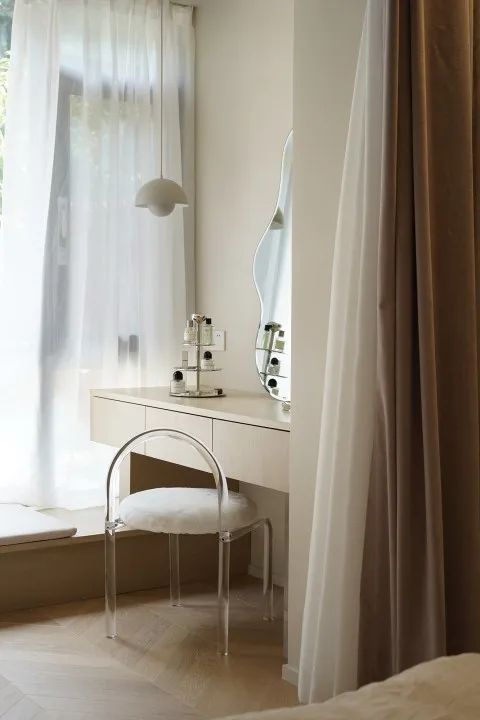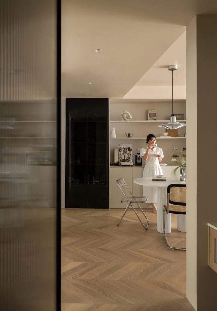 Triệu Hoa tin rằng điều quan trọng nhất khi sống độc thân không phải là tìm người bầu bạn, mà là tạo dựng một không gian sống thực sự phù hợp với bản thân. Căn hộ 2 phòng ngủ của cô được thiết kế theo phong cách tối giản, với nội thất được sắp xếp tinh tế để mỗi góc nhỏ đều mang đến cảm giác thư giãn và thoải mái. Cô không sử dụng các hệ tủ cồng kềnh hay đồ trang trí lộng lẫy, thay vào đó là những món đồ đơn giản nhưng ấm áp, giúp không gian luôn thoáng đãng và dễ chịu.