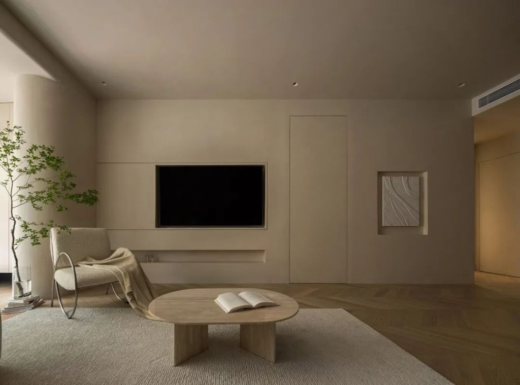 Điểm đặc biệt trong cách trang trí nhà của Triệu Hoa là sự lựa chọn màu sắc và chất liệu hài hòa. Cô ưu tiên sử dụng tông màu ấm để tạo cảm giác ấm cúng cho không gian sống một mình, kết hợp với sàn gỗ tự nhiên và đồ nội thất có chân thanh mảnh để căn phòng trở nên rộng rãi hơn. Tivi được gắn âm tường thay vì đặt trên kệ, giúp tối ưu hóa diện tích và tạo cảm giác gọn gàng. Mỗi chi tiết nhỏ đều được cô cân nhắc kỹ lưỡng, từ vị trí đặt sofa đến cách bày biện bàn trà, tất cả đều hướng đến mục tiêu tạo nên một tổ ấm thực sự thoải mái.